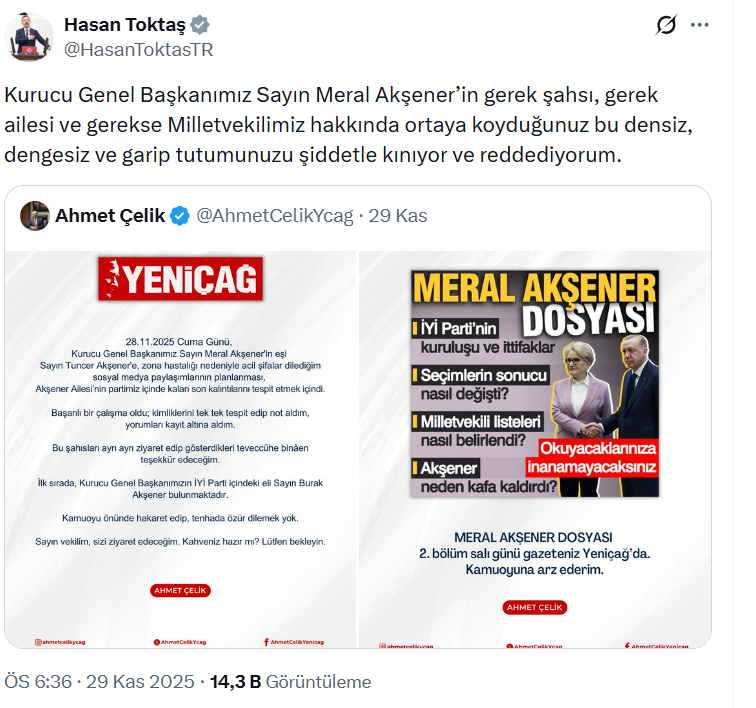 Çelik’in bu sert mesajı, İYİ Parti ve Yeniçağ üzerinde geniş yankı buldu.